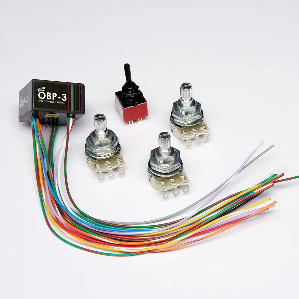 The OBP-3 is a three-band boost and cut bass, mid, and treble preamp, that has high headroom, low distortion, and the ability to reproduce the full dynamic range of your instrument. The OBP-3 has multiple wiring options, and can be wired with either a push/pull pot OR mini-toggle for midrange frequency selection. (See kit configuration option.)